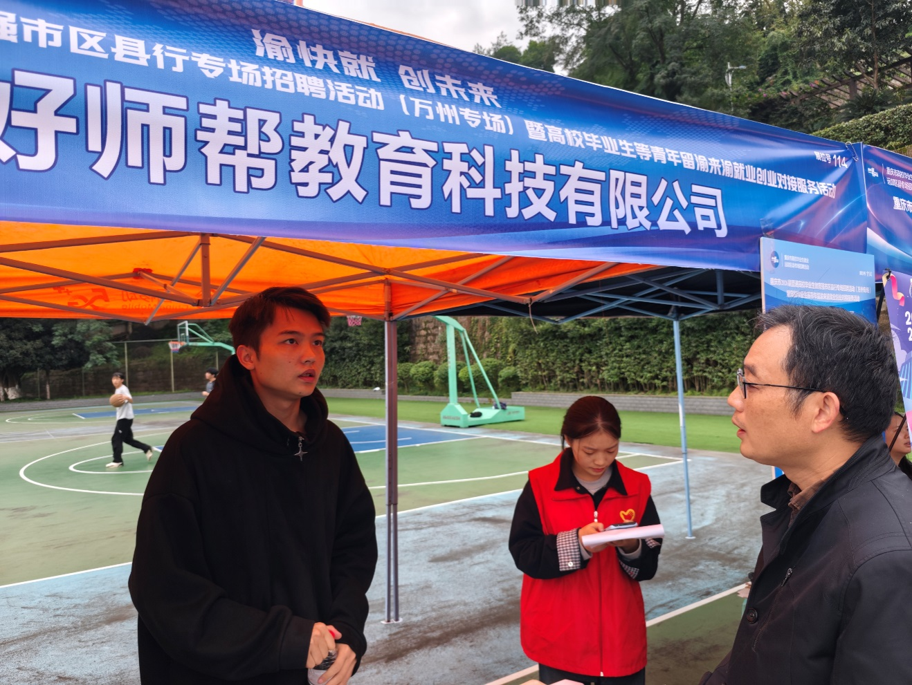 为全面落实毕业生就业工作部署,11月5日上午10:00,重庆三峡学院2026届毕业生“渝快就·创未来”秋季大型综合招聘会在学校篮球场隆重举行,教师教育学院积极响应学校要求,组织全体在校毕业生按时参加,并鼓励校外实习毕业生及非毕业班学生积极参与。学院党总支书记鄢沛亲临现场为毕业生提供就业指导。