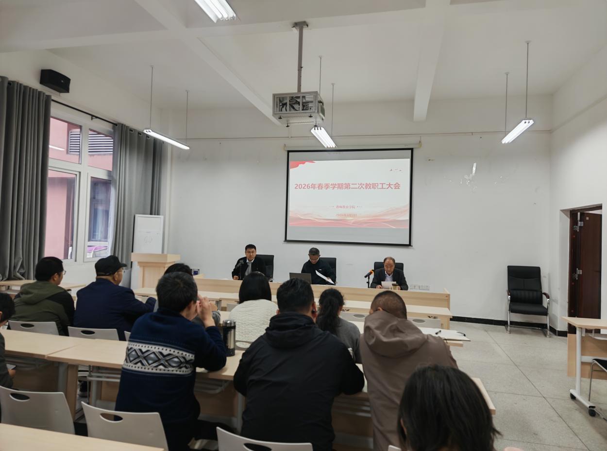 2026年4月2日,教师教育学院在博学楼3栋138会议室召开2026年春季学期第二次教职工大会暨政治理论学习会,会议由副院长黄成毅主持,全体教职工参会。