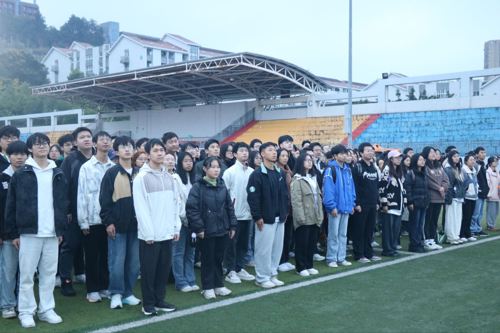 2025年10月27日早晨7时,教师教育学院与财经学院于学校足球场联合举行升旗仪式。两院全体师生整齐列队,精神饱满,展现出良好的精神风貌。