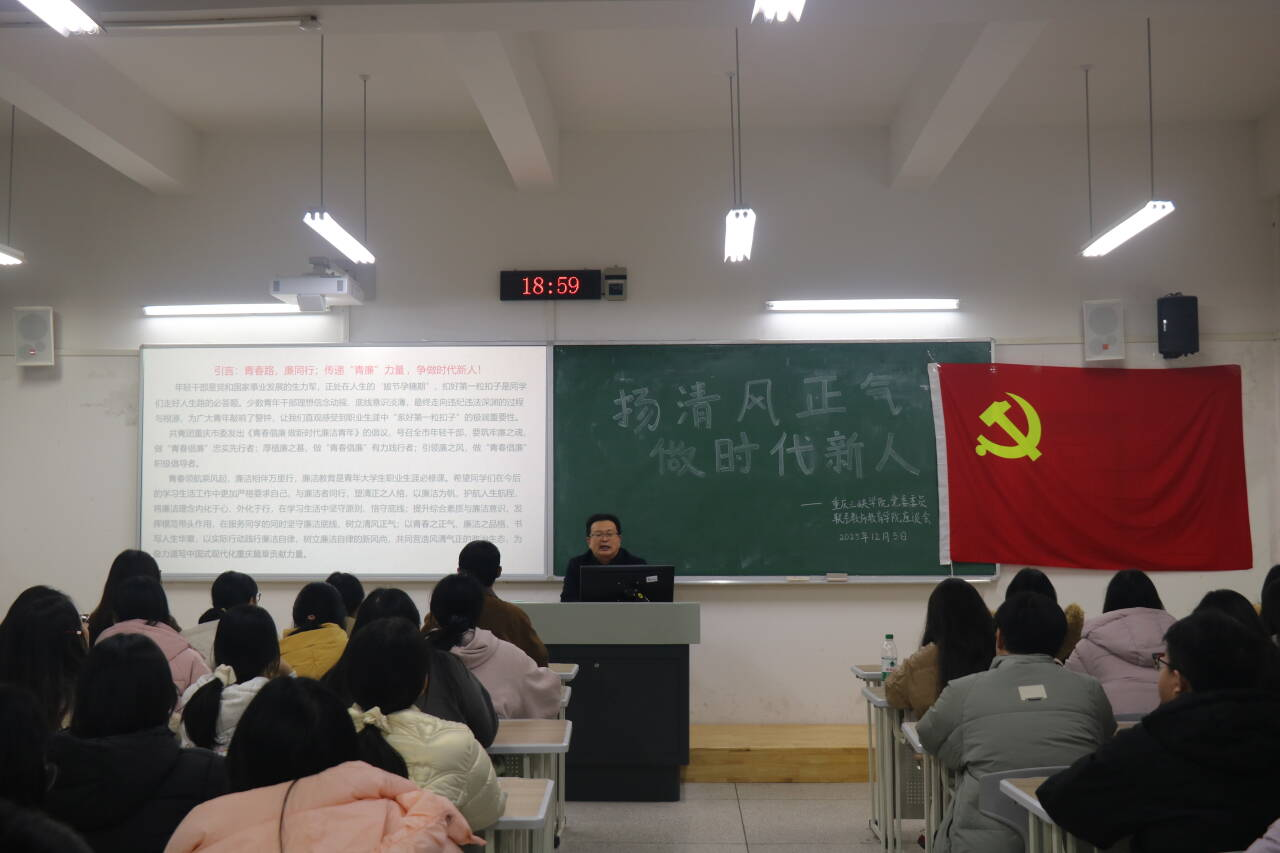 为深入贯彻落实党委委员联系基层党组织工作制度,切实发挥党委委员联系基层党组织的桥梁纽带作用,学校党委委员任江林于12月5日19:00深入我院开展“扬清风正气,做时代新人”主题宣讲会,学院学生支部党员、入党积极分子及学生会代表到场聆听学习。